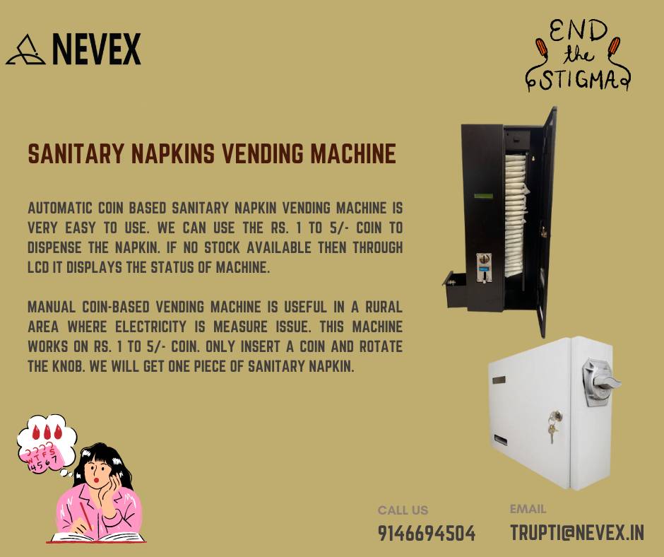 Nevex delivers value added products for women such as a Sanitary Napkin Vending Machine which helps in menstrual🩸 Pad Vending Machine in Pune. Napkin Vending Machine in Maharashtra. Automatic Pad Vending System across India.